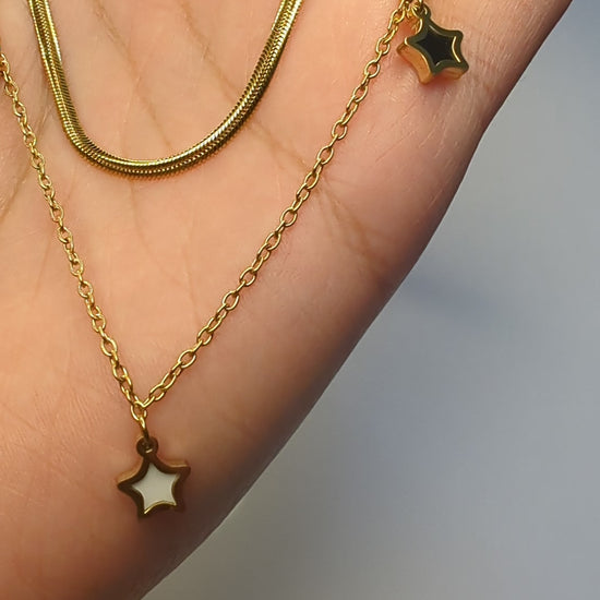 Elevate your everyday style with this beautiful layered heart pendant necklace. Designed with a chic double-layer look, it features a sleek snake chain paired with a delicate link chain for a modern, stacked effect. The charming heart pendants add a soft, romantic touch while keeping the design minimal and classy.